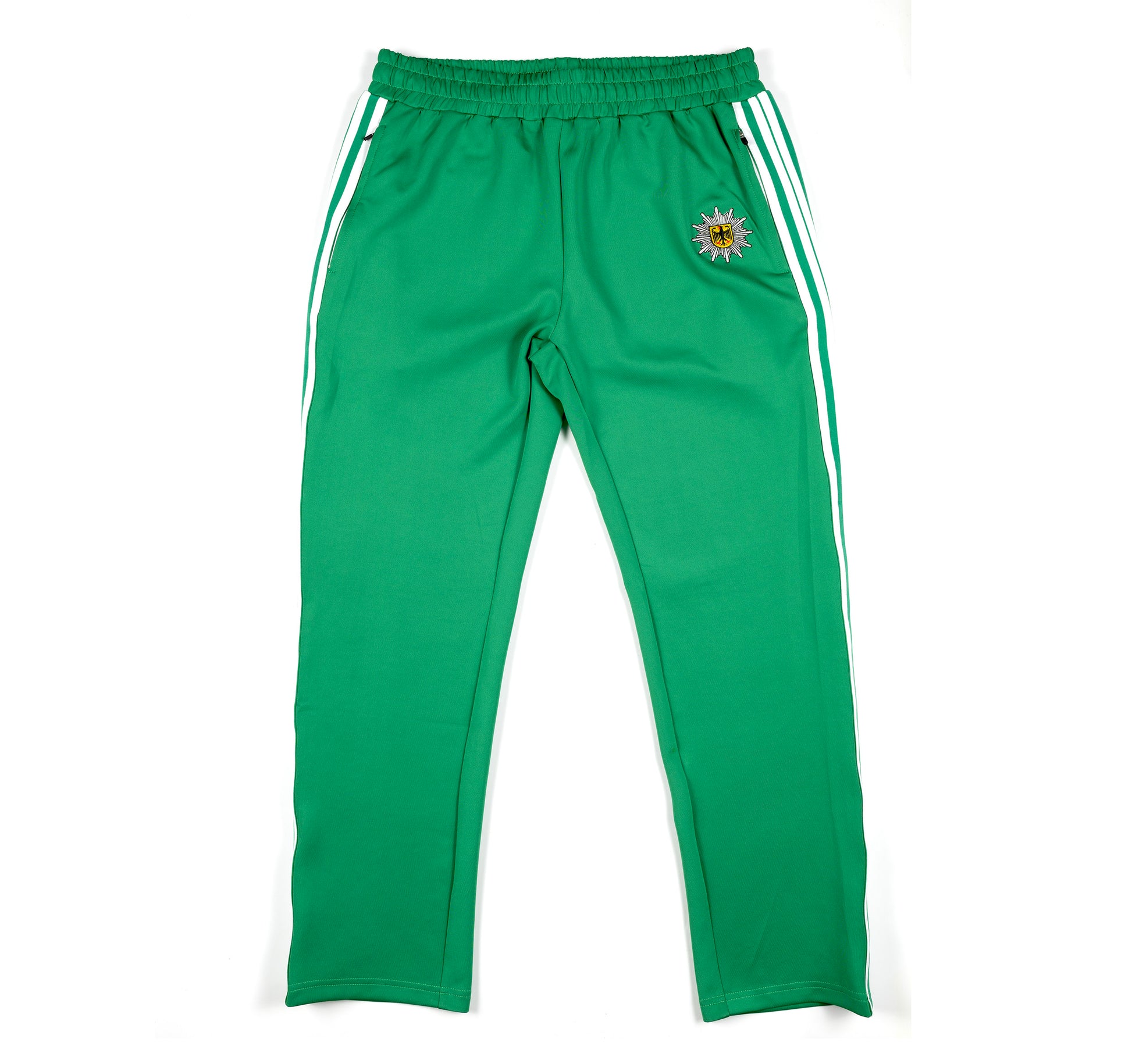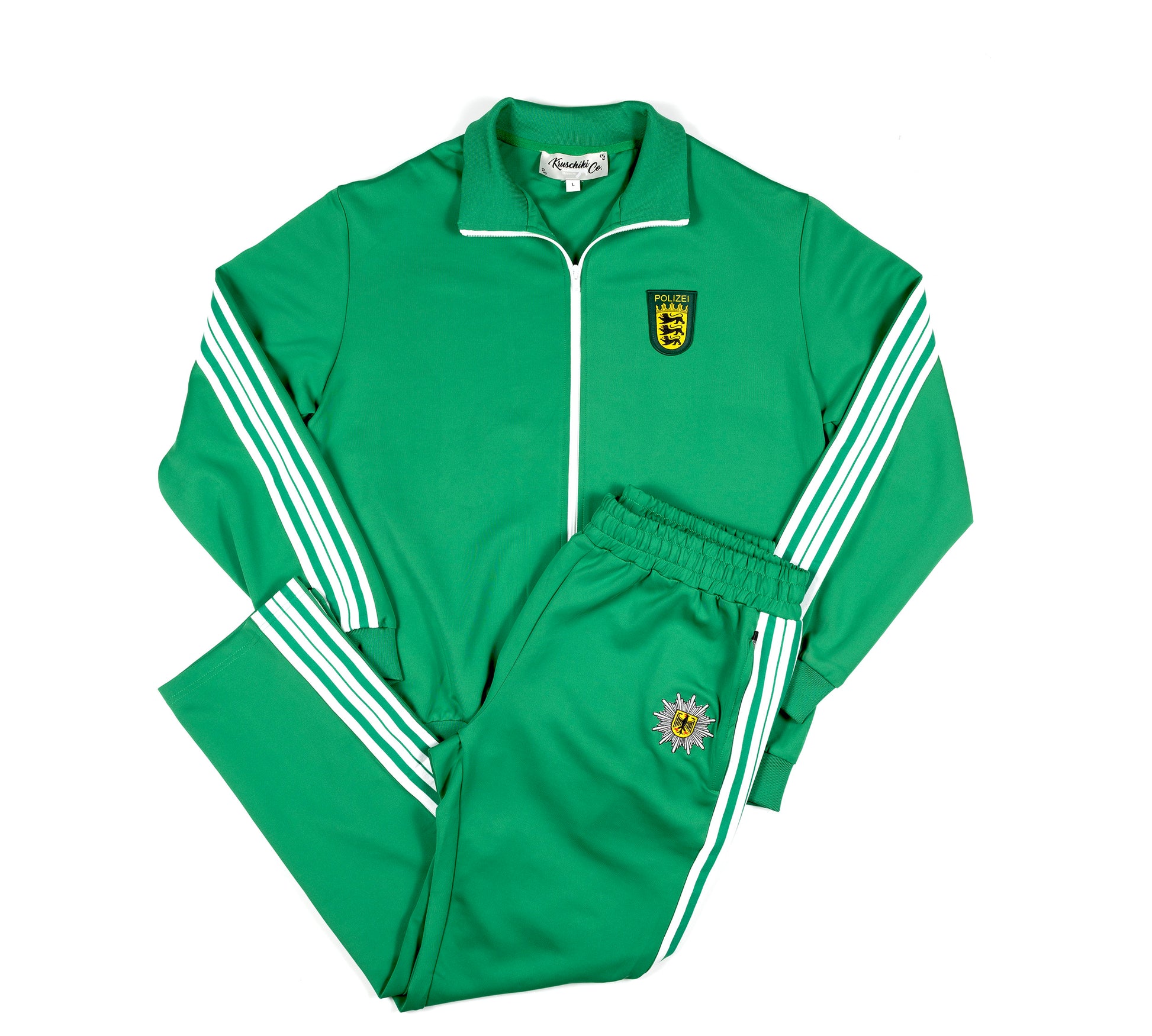 We are pleased to present our reproduction of a 1980s German Police Tracksuit. Every detail, from the vibrant color palette to the classic stripe accents, is designed to replicate the original German police tracksuit. Tailored for a relaxed and comfortable fit, these classic style tracksuits are slightly different from the slim fit modern tracksuits of today. Each set includes both the jacket and matching pants for a coordinated look. You may notice that the German Police symbol on the jacket differs from that on the pants. The breast jacket symbol is for the state of Baden Württemberg, while the thigh symbol is that of the German Federal Police. This is to differentiate these from the originals of the 1980s, while still providing an authentic flair.