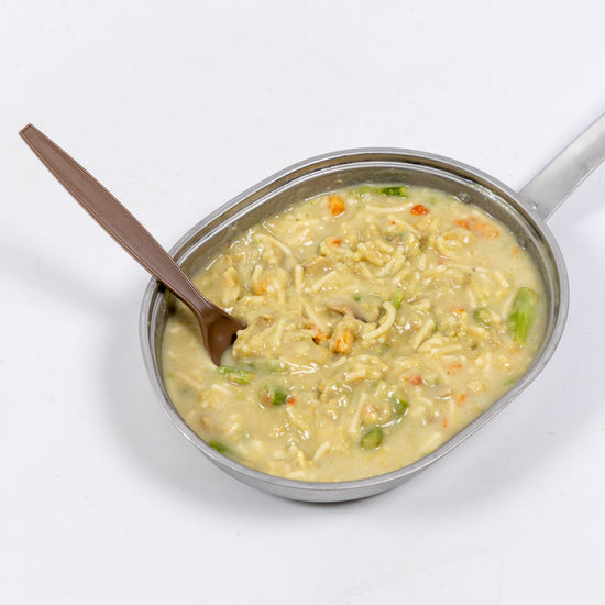 Lightweight, weighing in at only 5 ounces, these delicious meals are conveniently shaped for easy packing. Mountain House previously made these MREs for military contracts until they were phased out in favor of different meal types. They can occasionally be found in MCWs (Meal, Cold Weather) still issued. These are "deadstock" from the last military contract, but they still have 75% of their official shelf life left, making them a good choice for hiking, camping, or long term food storage. Just add water!